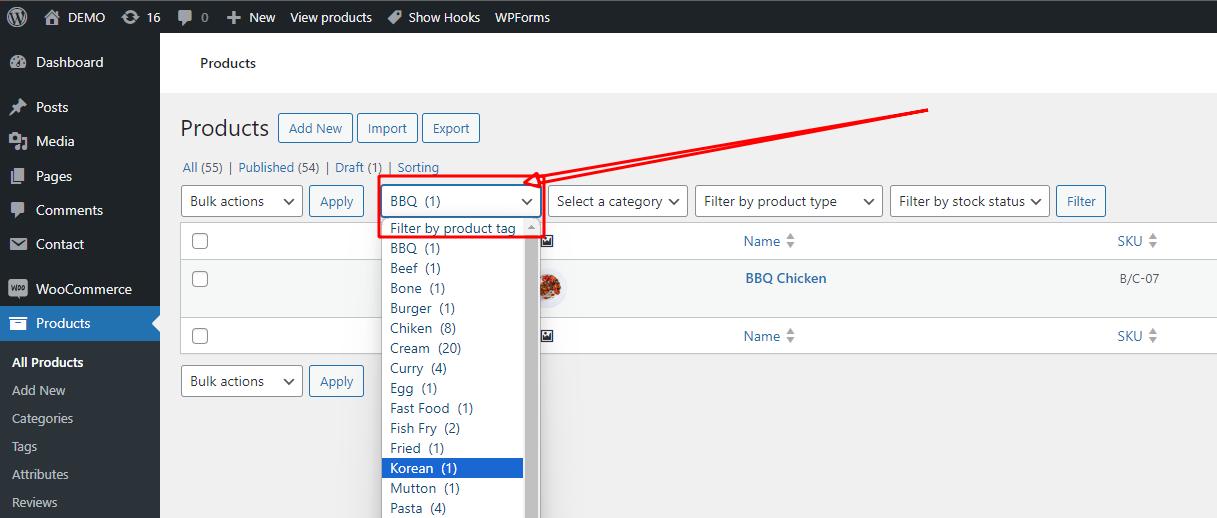 Woocommerce后台产品列表添加Tag标签筛选过滤器
