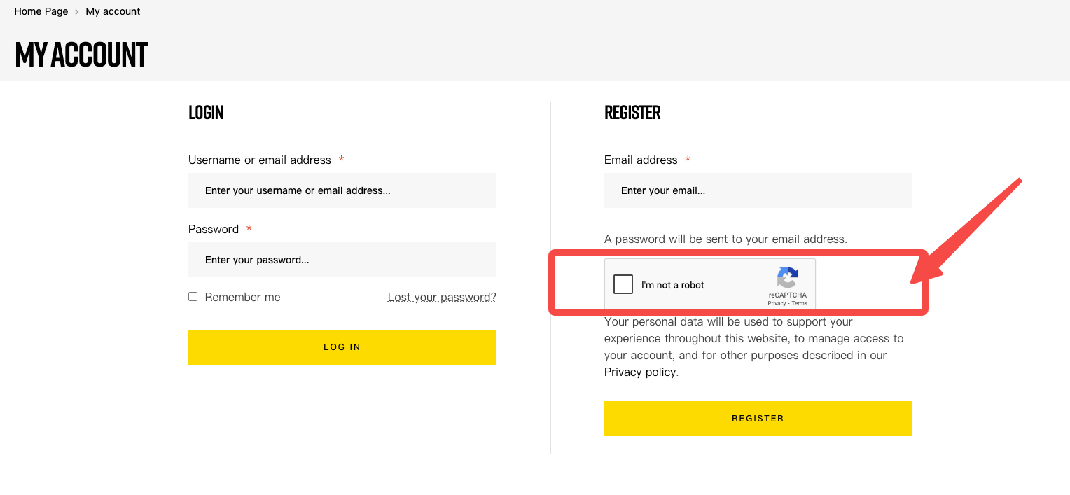 保存更改后,访问 WooCommerce 的“My Account”页面,查看注册表单中是否显示 reCAPTCHA 验证码,并测试验证功能是否正常工作。