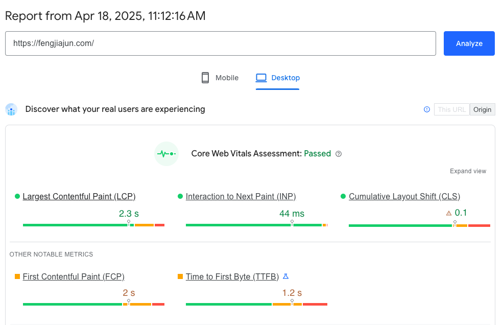 谷歌采用一种标准化指标【PageSpeed Insights】来评估网站速度性能,这些指标统称为”Core Web Vitals”(核心网页指标)。让我们详细了解这些关键指标: