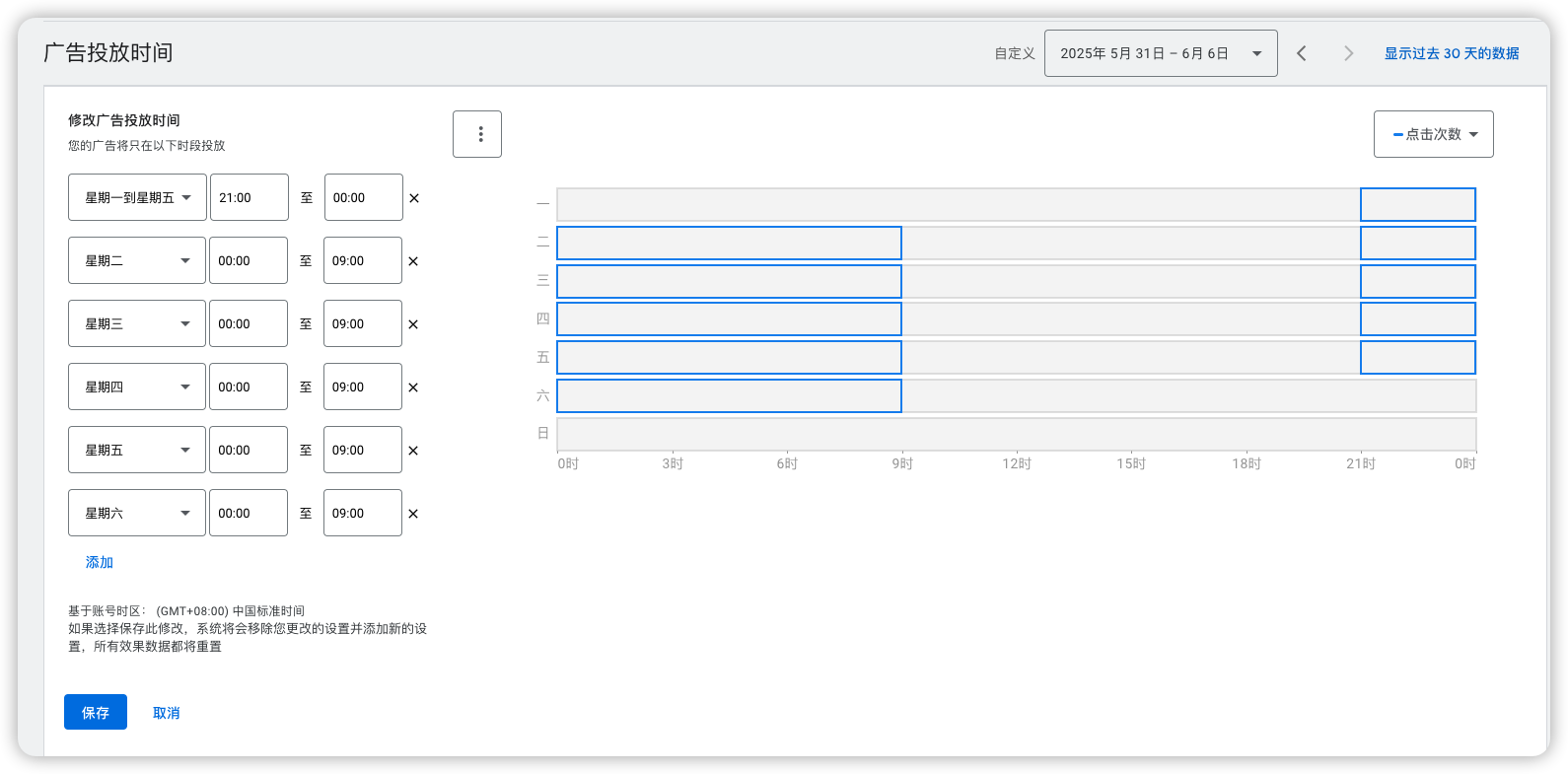 如何设置中国时区的 Google Ads 广告在美国时间段投放?